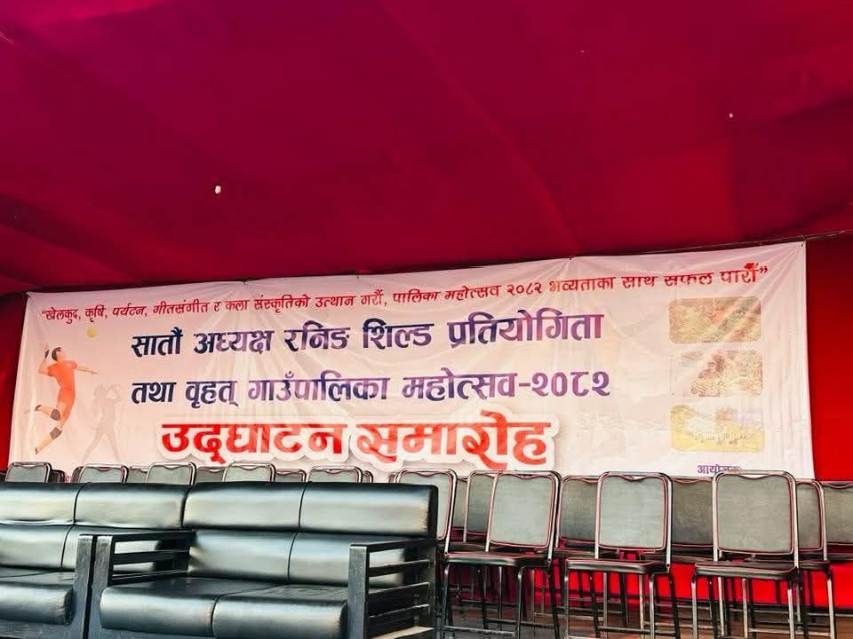 मंसिर ४, सोलुखुम्बु । सोलुखुम्बुको थुलुङ दुधकोशी गाउँपालिकामा सातौं अध्यक्ष रनिङ शिल्ड प्रतियोगिता र बृहत सांस्कृतिक कार्यक्रमको तयारी पूरा भएको छ । प्रतियोगिता शुक्रबारबाट सञ्चालन हुने भएको छ । वडा अध्यक्ष महेन्द्रदीप राई अनुसार, भोलि कार्यक्रमको औपचारिक उद्घाटन गर्ने कार्यक्रम तय गरिएको छ ।